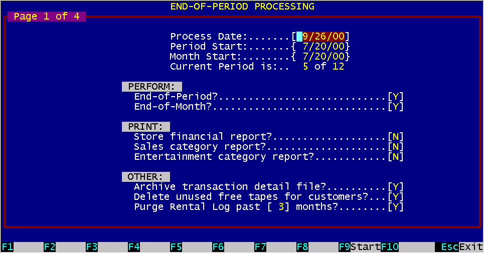 If you select "Y", you will perform the end of period functions as described above.